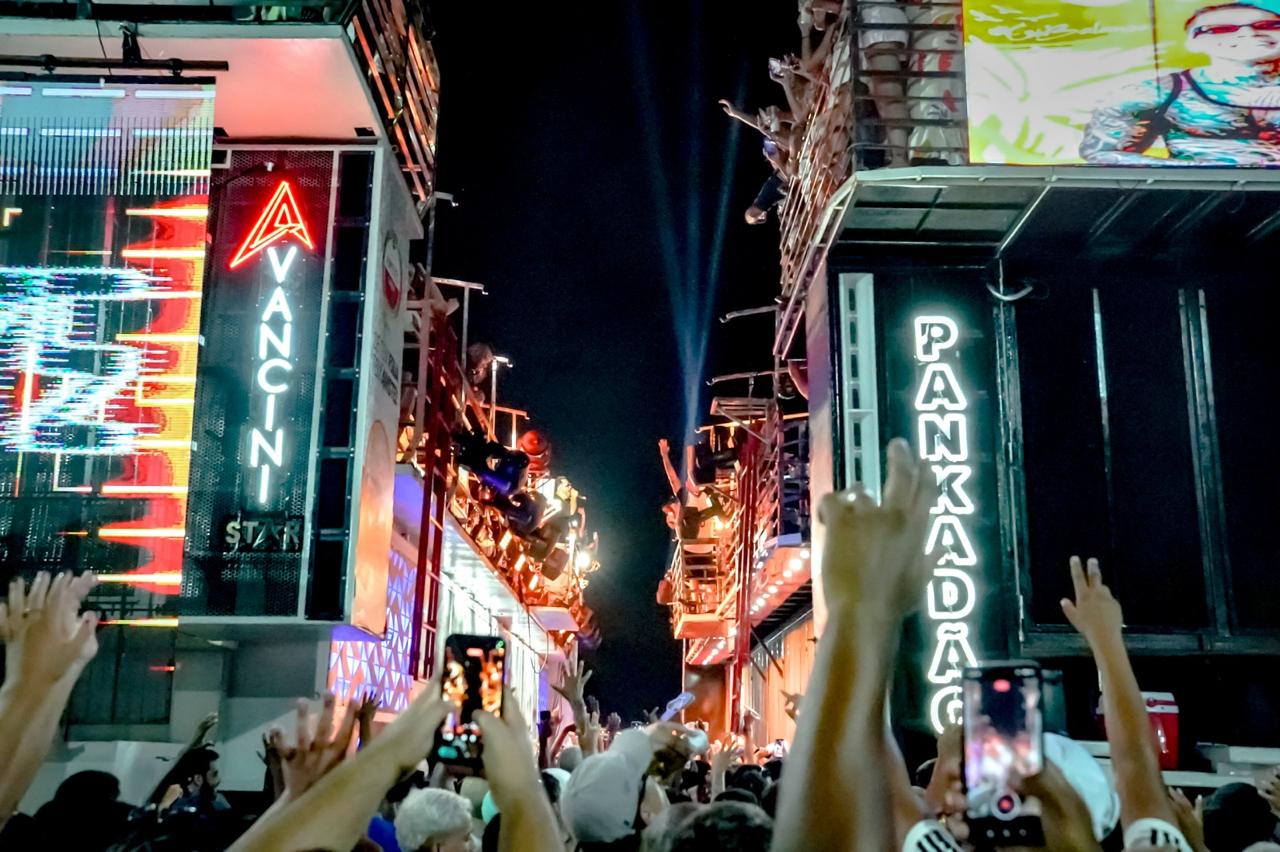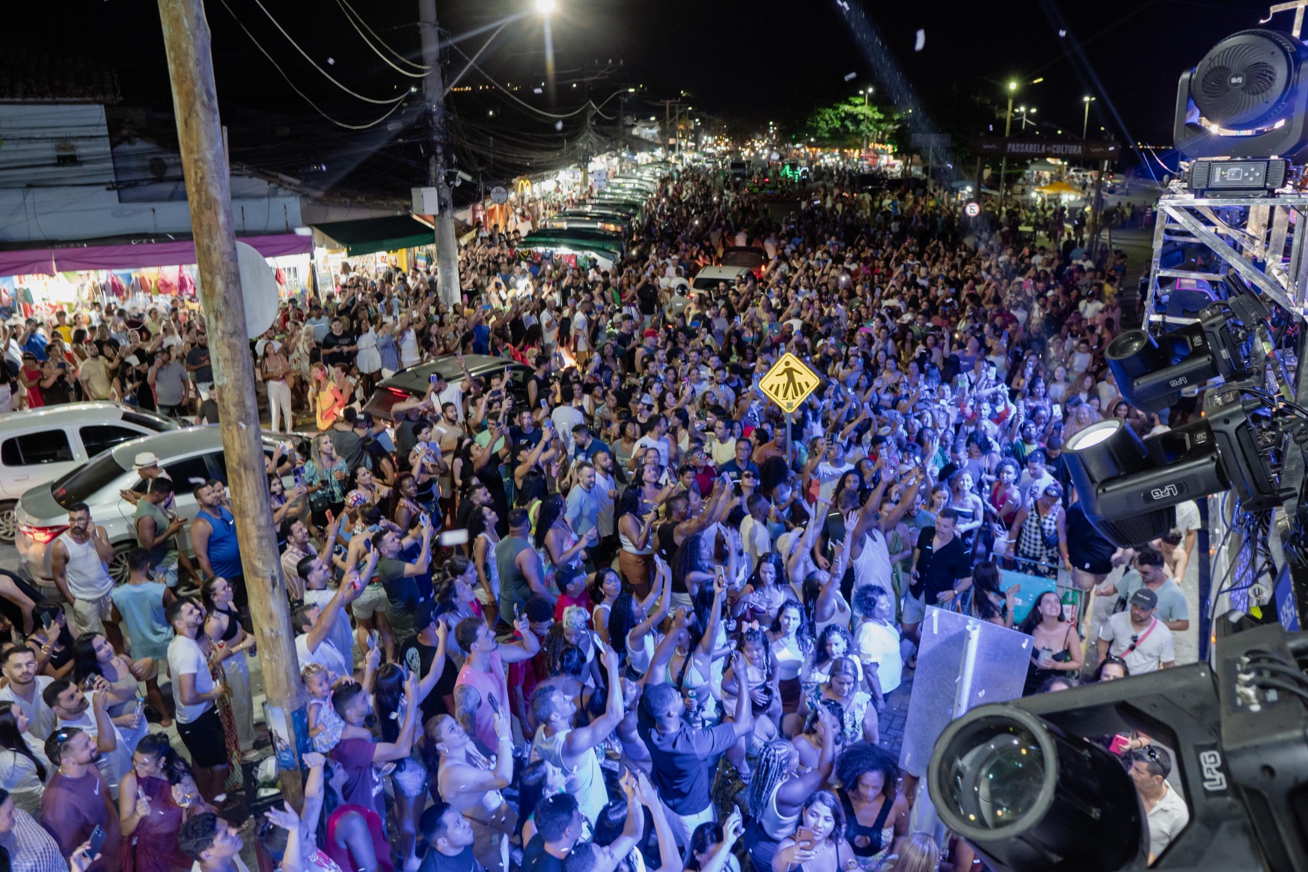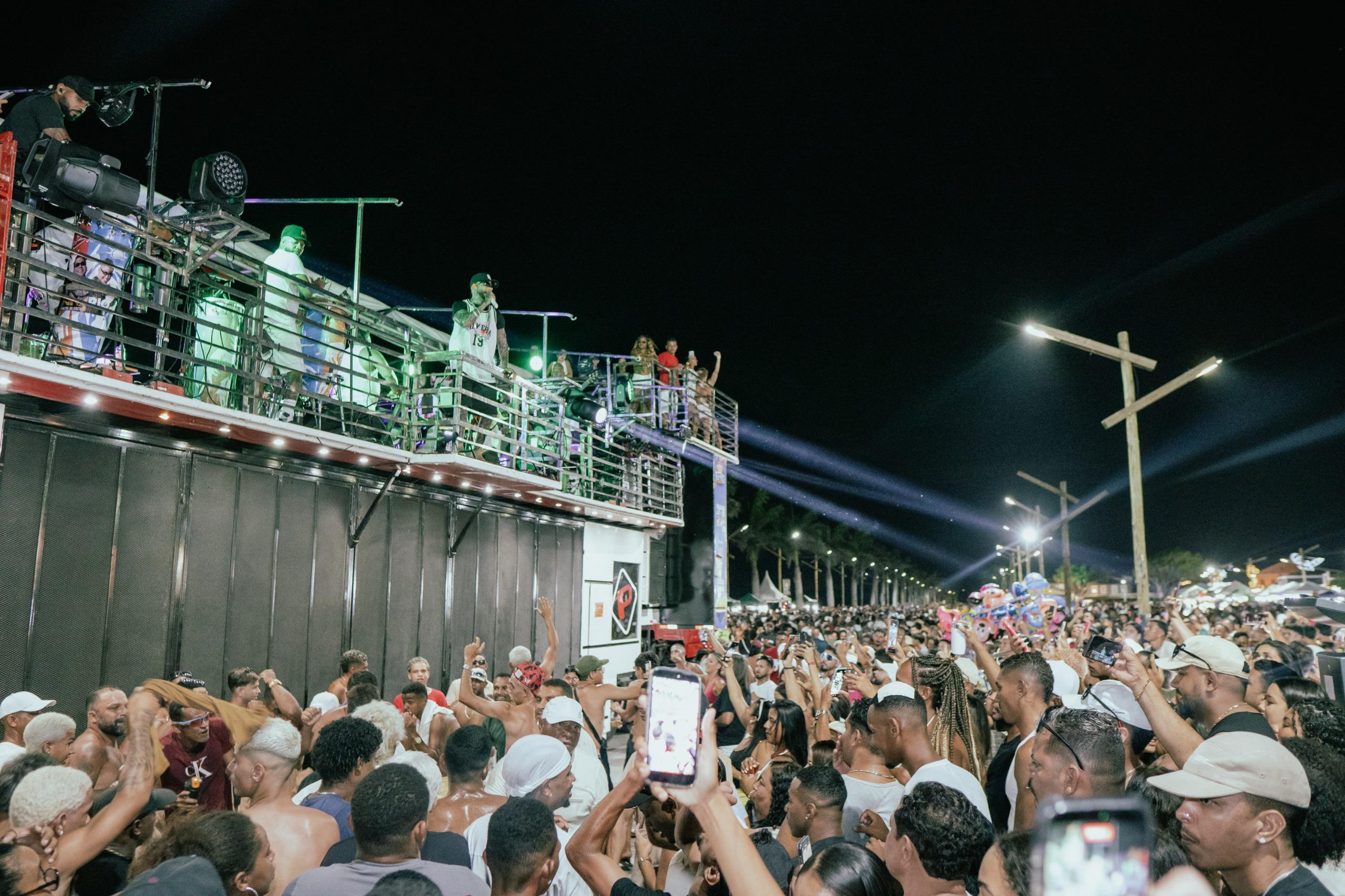 No outro trio, Tomate manteve a energia em alta com uma sequência de sucessos consagrados, em um clima de carnaval fora de época que fez o público cantar e dançar do início ao fim. A junção dos dois artistas potencializou a festa e resultou na maior concentração de pessoas já registrada em um evento público na cidade.