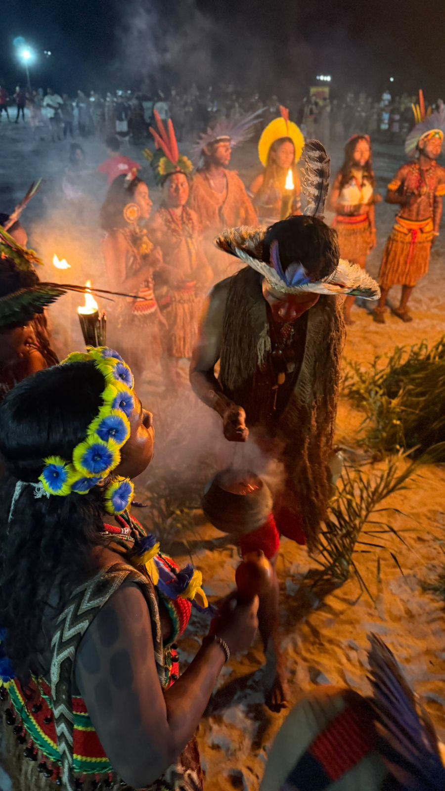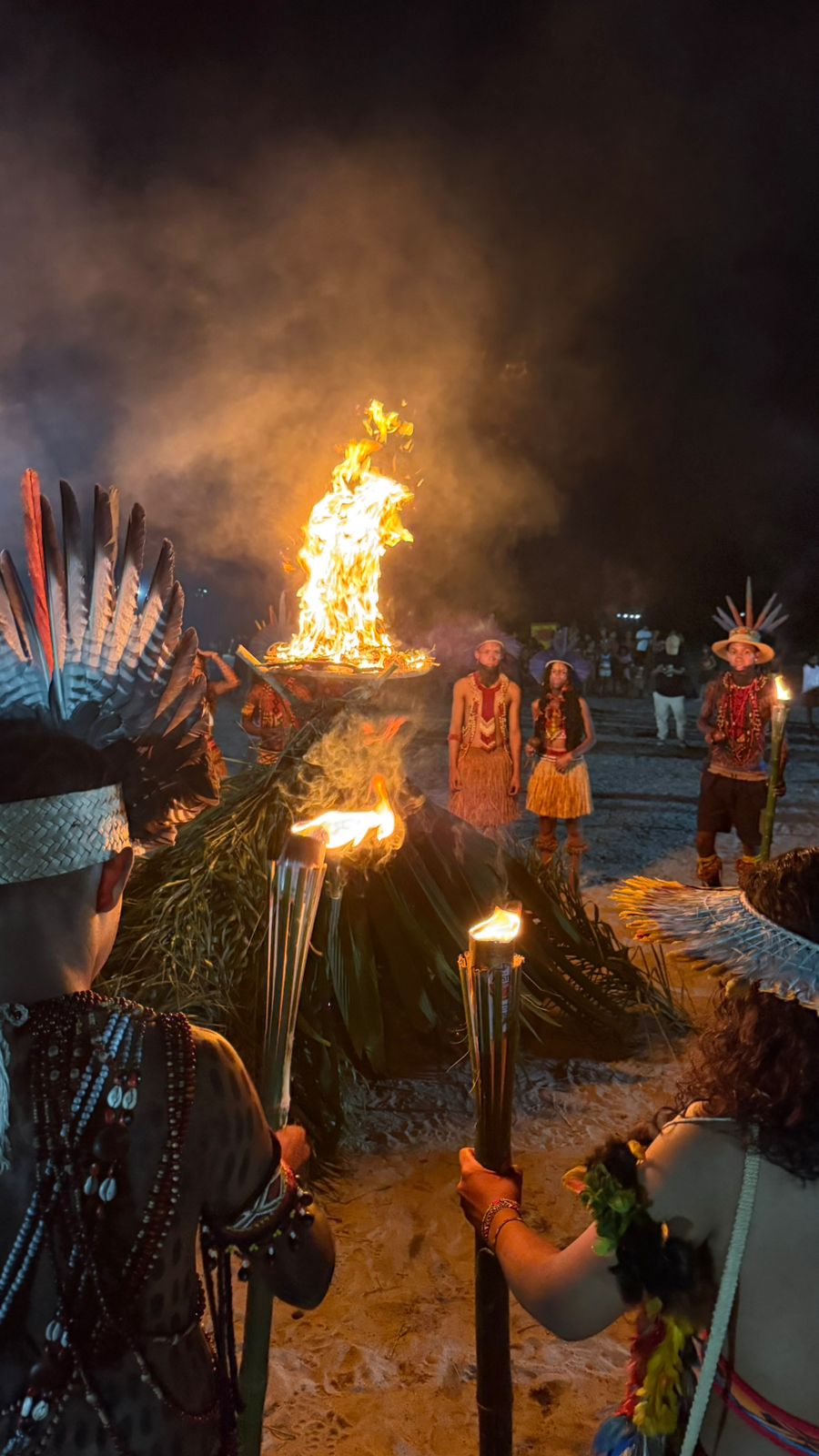 Acompanhada pelo Cacique da aldeia Mãe Barra Velha, Suruí Pataxó e da vice, a senhora Urubá Pataxó, a cerimônia de abertura aconteceu a tarde, seguida da entrada das delegações e a bênção do pajé Txihí Pataxó, jovem que assumiu a grande responsabilidade de conduzir a missão espiritual da aldeia Mãe, neto do velho pajé Caruncho Dendê. Em seguida, acendimento da pira sagrada, em um ritual que conectou esporte, espiritualidade e identidade cultural.
