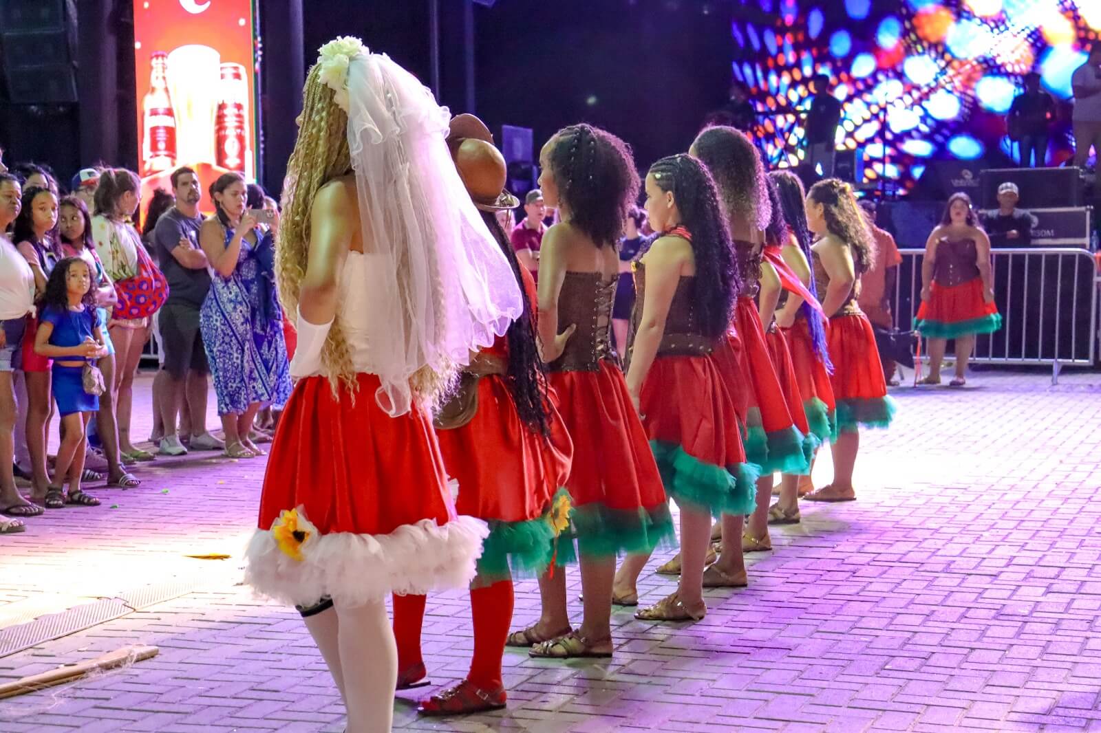 Leo Fera e o Bonde da Bregadeira mantiveram a energia alta durante a noite com apresentações vibrantes. A programação começou à tarde com as quadrilhas juninas Cia Lágrima de Palhaço e Cia Balão de Ouro, que encantaram o público com danças típicas.