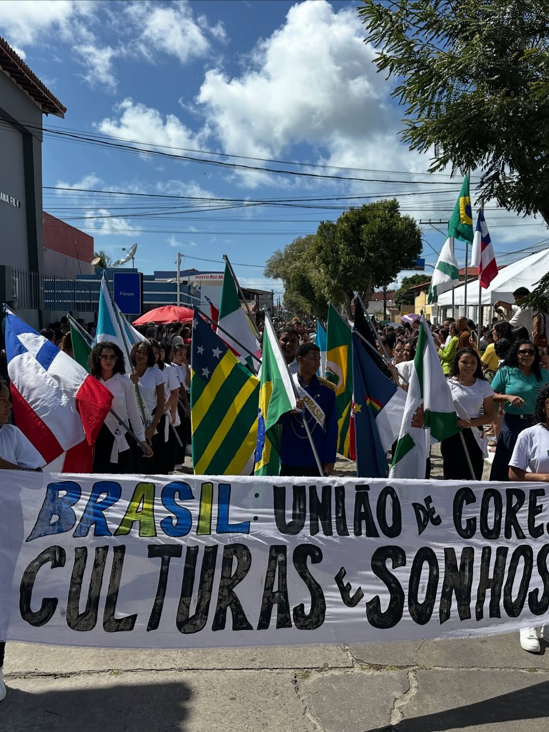 Por volta das 9h30, estudantes de todas as escolas do interior e da sede se reuniram em frente à Prefeitura Municipal para o solene hasteamento das bandeiras, em cerimônia que contou com a presença do prefeito Iêdo Elias, da primeira-dama Dra. Tarcísia Fonseca, secretários municipais, vereadores e demais autoridades.