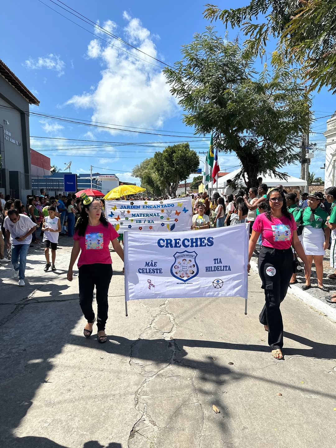 Ao som do Hino Nacional e do Hino de Belmonte, executados brilhantemente pela Filarmônica XV de Setembro, teve início o tradicional Desfile Cívico, que percorreu ruas da cidade até chegar ao prédio histórico da Biblioteca Municipal Sosígenes Costa (antigo Instituto do Cacau).