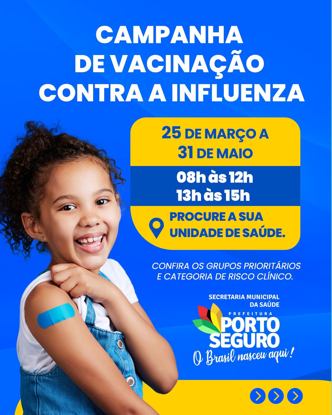 A Prefeitura de Porto Seguro inicia, nesta segunda-feira, 25, a campanha de vacinação contra a Influenza de 2024.