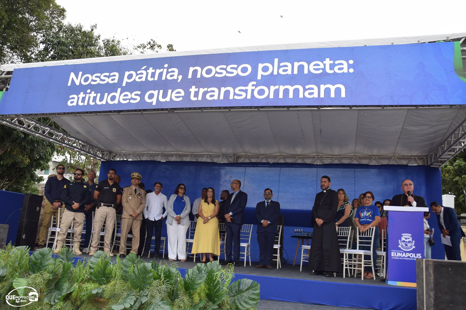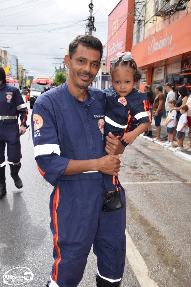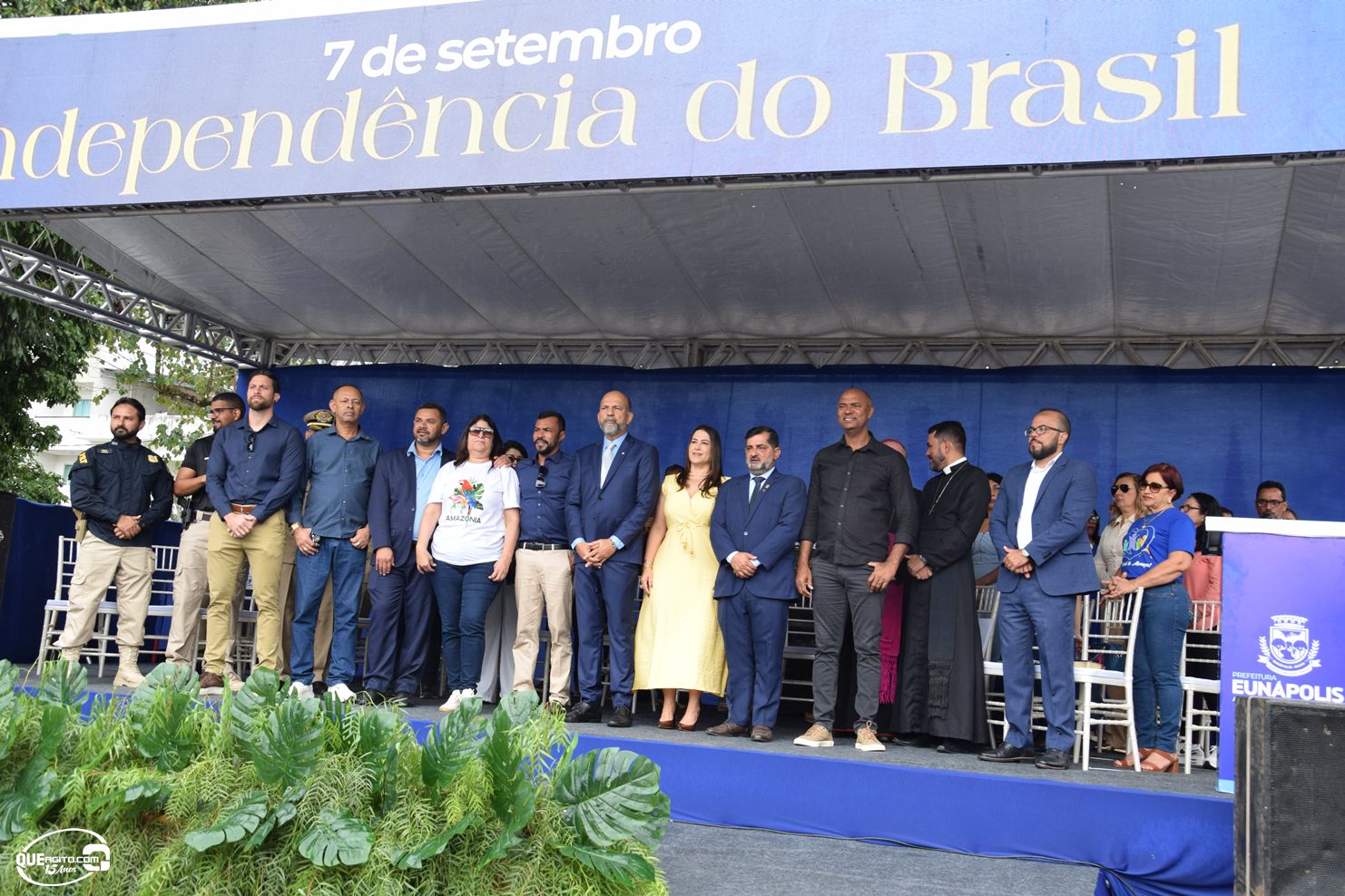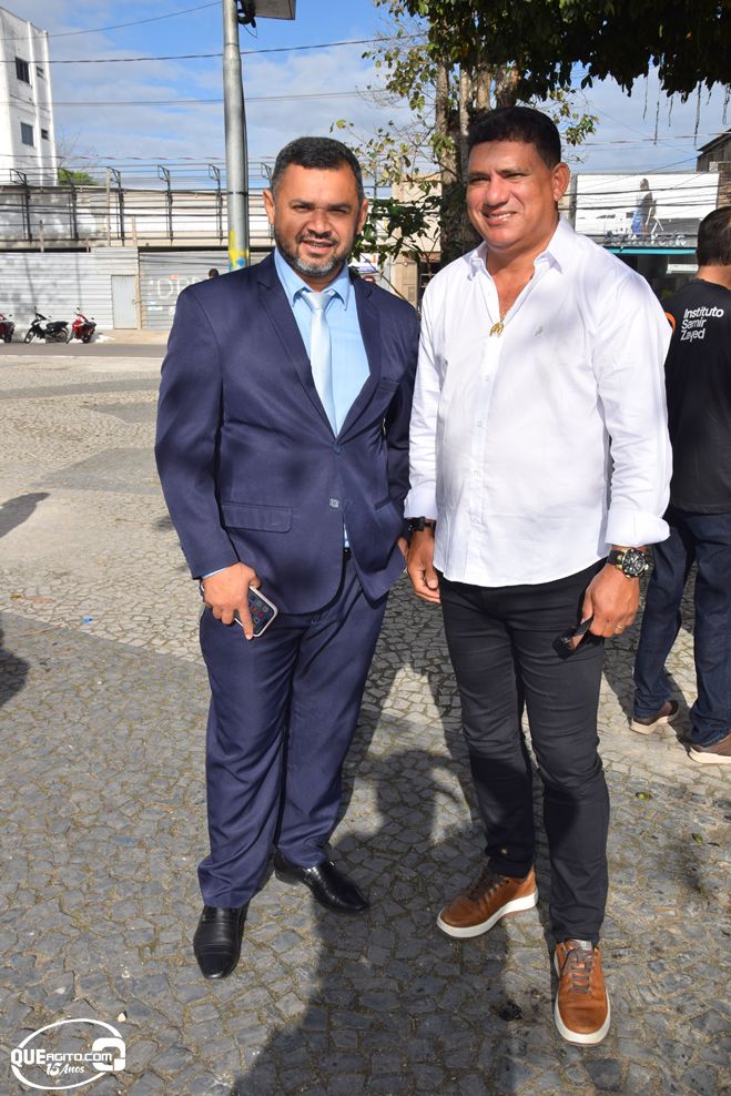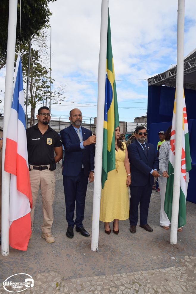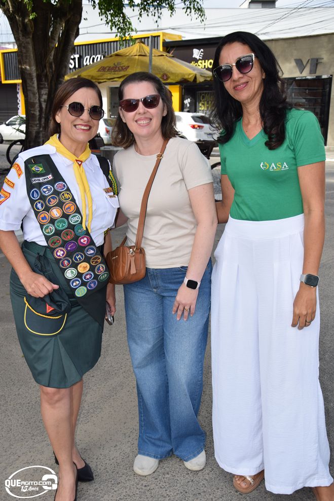 No palanque oficial, instalado na Praça da Bandeira, o prefeito Robério Oliveira acompanhou o evento ao lado da primeira-dama e deputada estadual Cláudia Oliveira, do vice-prefeito Pastor Bené, do presidente da Câmara, Valdiran Marques, além de vereadores, secretários municipais e representantes das forças de segurança, autoridades civis e religiosas.