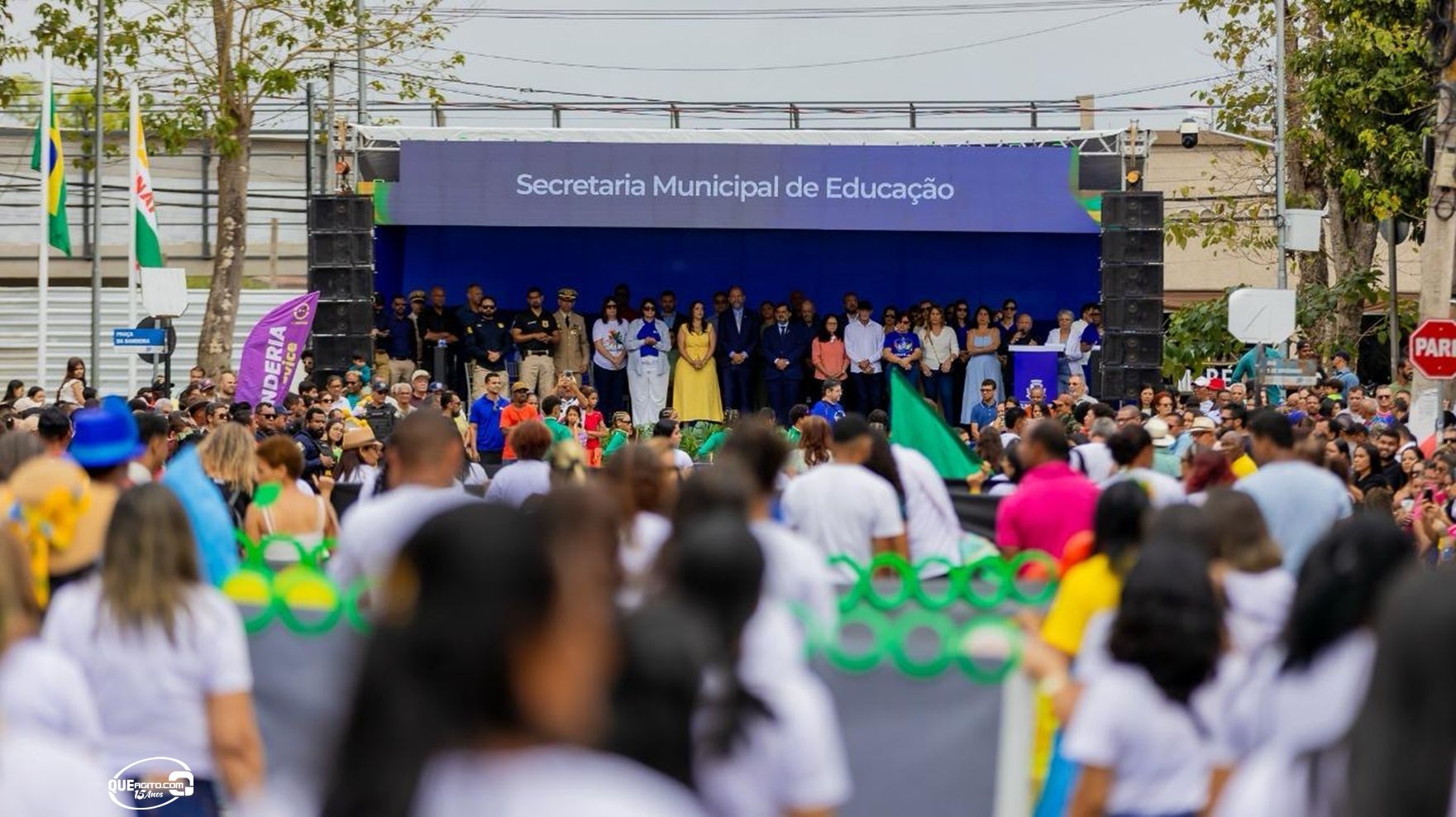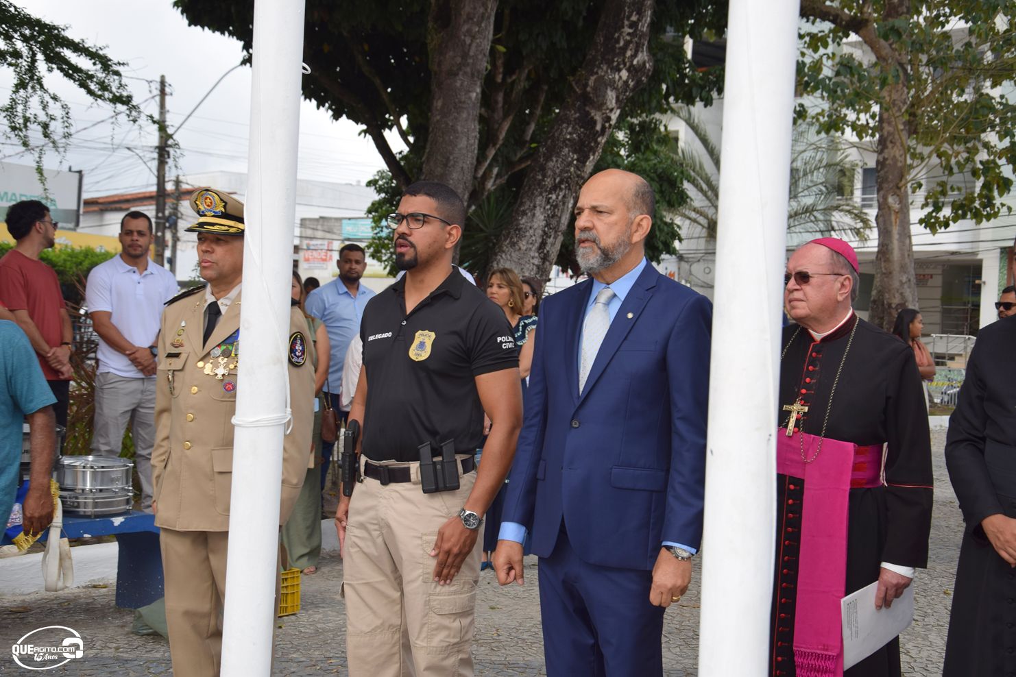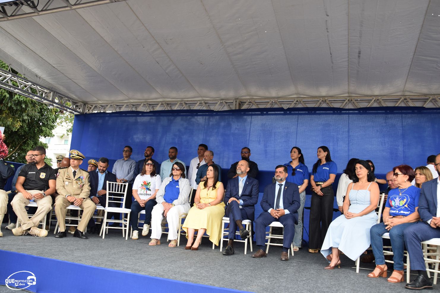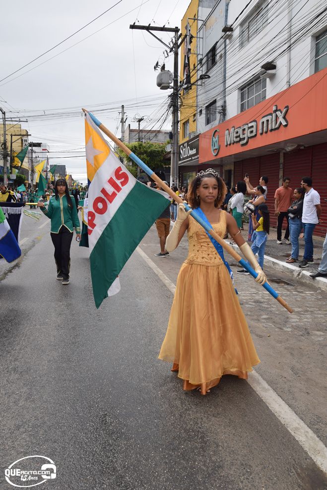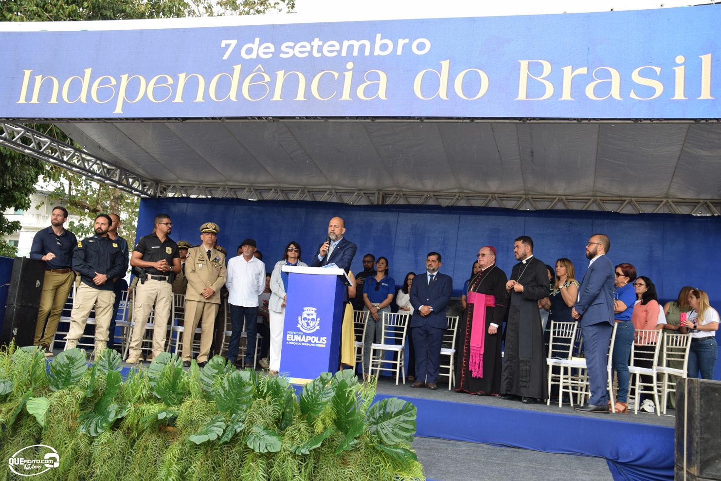 No palanque oficial, instalado na Praça da Bandeira, o prefeito Robério Oliveira acompanhou o evento ao lado da primeira-dama e deputada estadual Cláudia Oliveira, do vice-prefeito Pastor Bené, do presidente da Câmara, Valdiran Marques, além de vereadores, secretários municipais e representantes das forças de segurança, autoridades civis e religiosas.