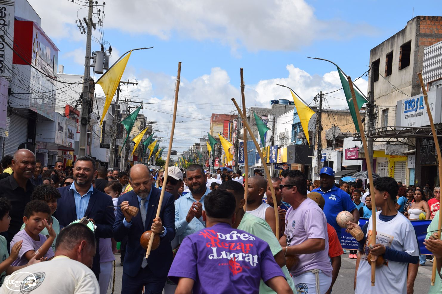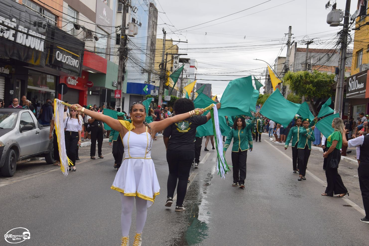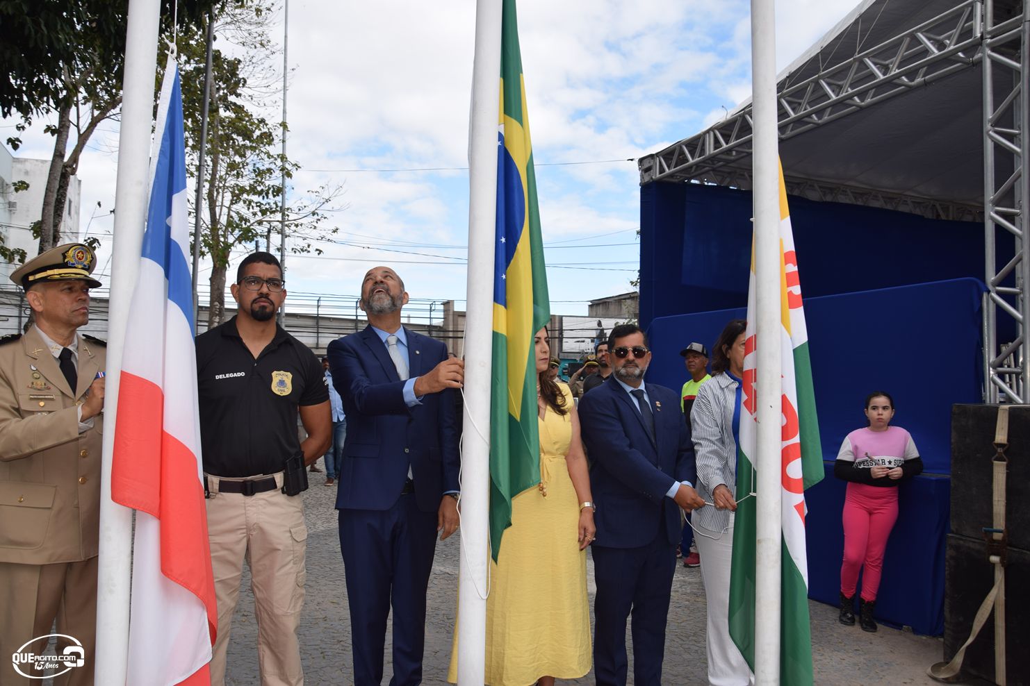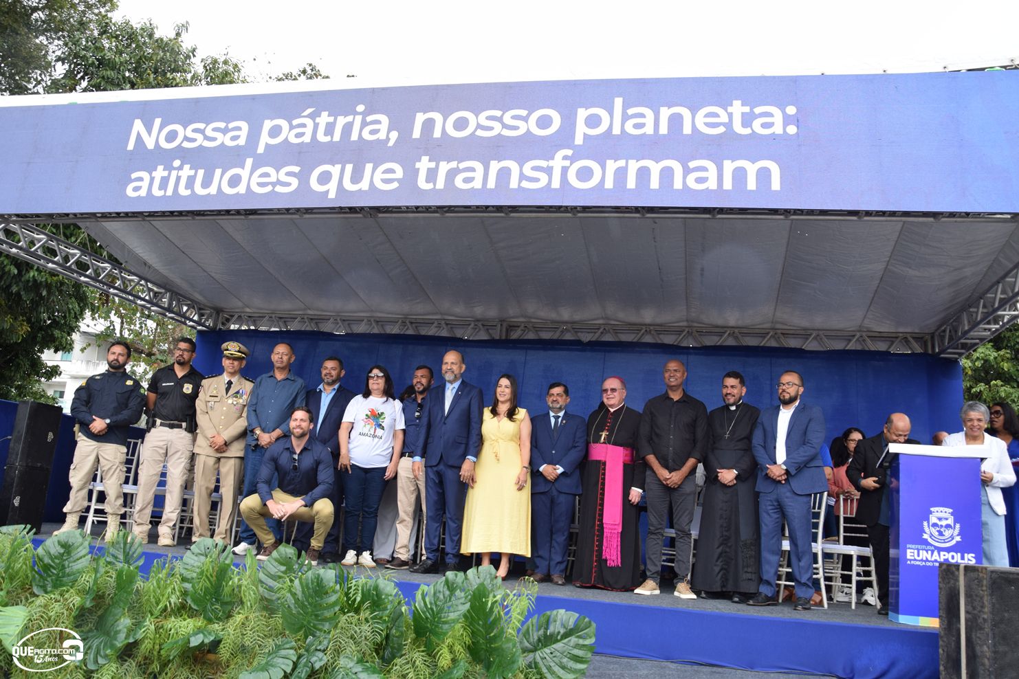 No palanque oficial, instalado na Praça da Bandeira, o prefeito Robério Oliveira acompanhou o evento ao lado da primeira-dama e deputada estadual Cláudia Oliveira, do vice-prefeito Pastor Bené, do presidente da Câmara, Valdiran Marques, além de vereadores, secretários municipais e representantes das forças de segurança, autoridades civis e religiosas.