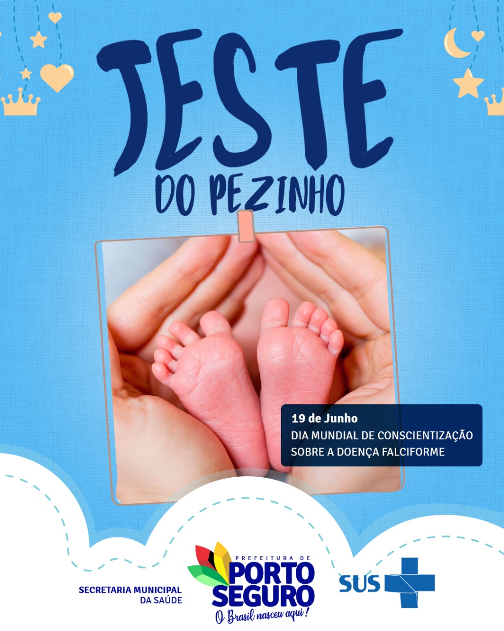 A Secretaria da Saúde de Porto Seguro alerta sobre a importância do Teste do Pezinho, realizado no recém-nascido.
