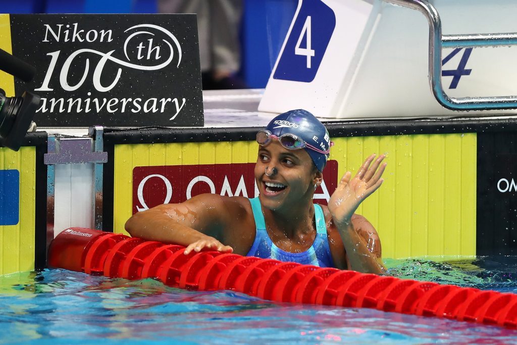 Ela venceu um duelo particular contra a chinesa Fu Yuanhui, de quem perdeu na final do Mundial de Kazan, em 2015, deu o troco na marrenta rival e ganhou a medalha de ouro nos 50m costas. Completou a prova em 27s14, apenas um centésimo à frente de Fu. A marca é a terceira melhor da história, só atrás dos 27s11 de Fu em Kazan e do recorde mundial, da também chinesa Jing Zhao, 27s09, que dura desde 2009, ainda na época dos trajes tecnológicos.