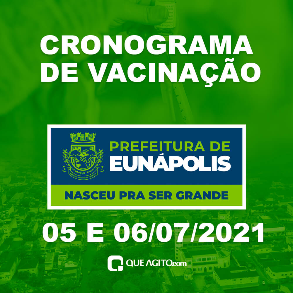 💉 Nos dia 05/07 [segunda-feira], Inicia a imunização com a 1ª dose da vacina contra a Covid-19 para pessoas a partir de 45 anos e no dia 06/07 [terça-feira], para o público a partir de 44 anos.