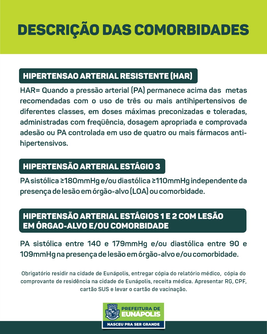 ⚠️ ATENÇÃO: Levar documento de identificação com foto, comprovante de residência da cidade de Eunápolis, carteira de vacina, CPF e cartão SUS .