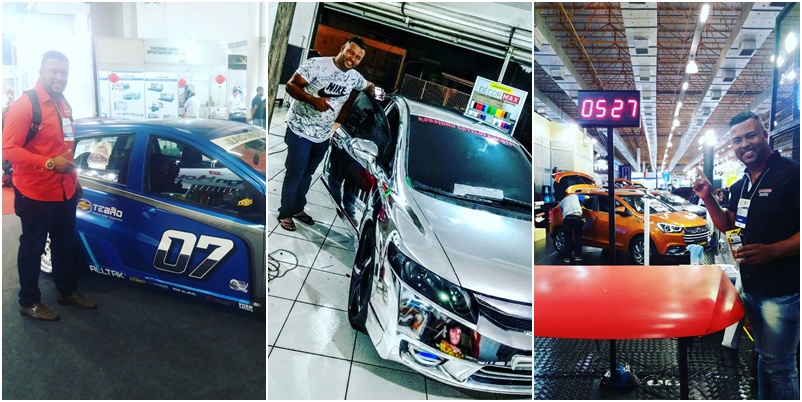 O eunapolitano, Felipe de Jesus Costa, mais conhecido como “Felipefest”, profissional na área de Envelopamento em Adesivos, se destacou mais uma vez, na feira de comunicação visual no Expor Center norte em São Paulo.