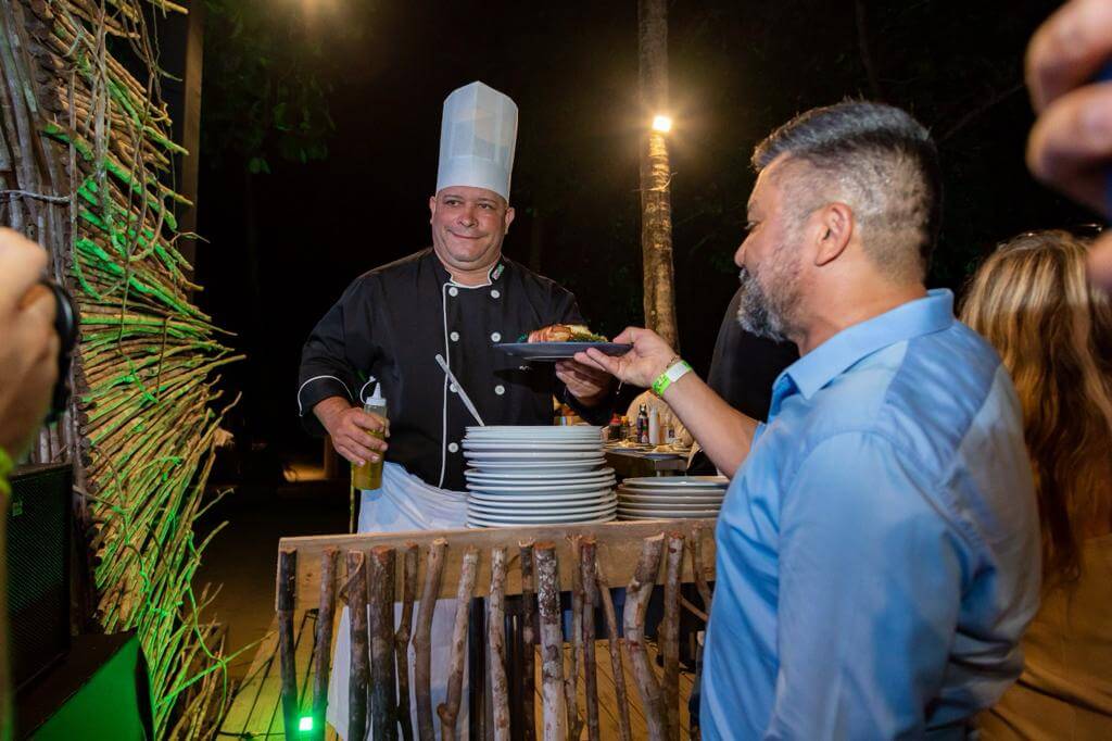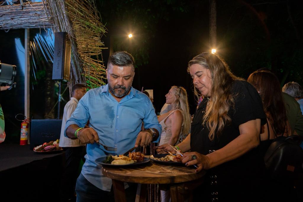 A renomada chef de cozinha e jurada do Programa Master Chef, Helena Rizzo, tornou a cerimônia no Uiki Parracho, em Arraial d’Ajuda, uma experiência ainda mais especial, com as memórias que a comida pode evocar, adicionando um toque de originalidade e requinte à degustação da noite.
