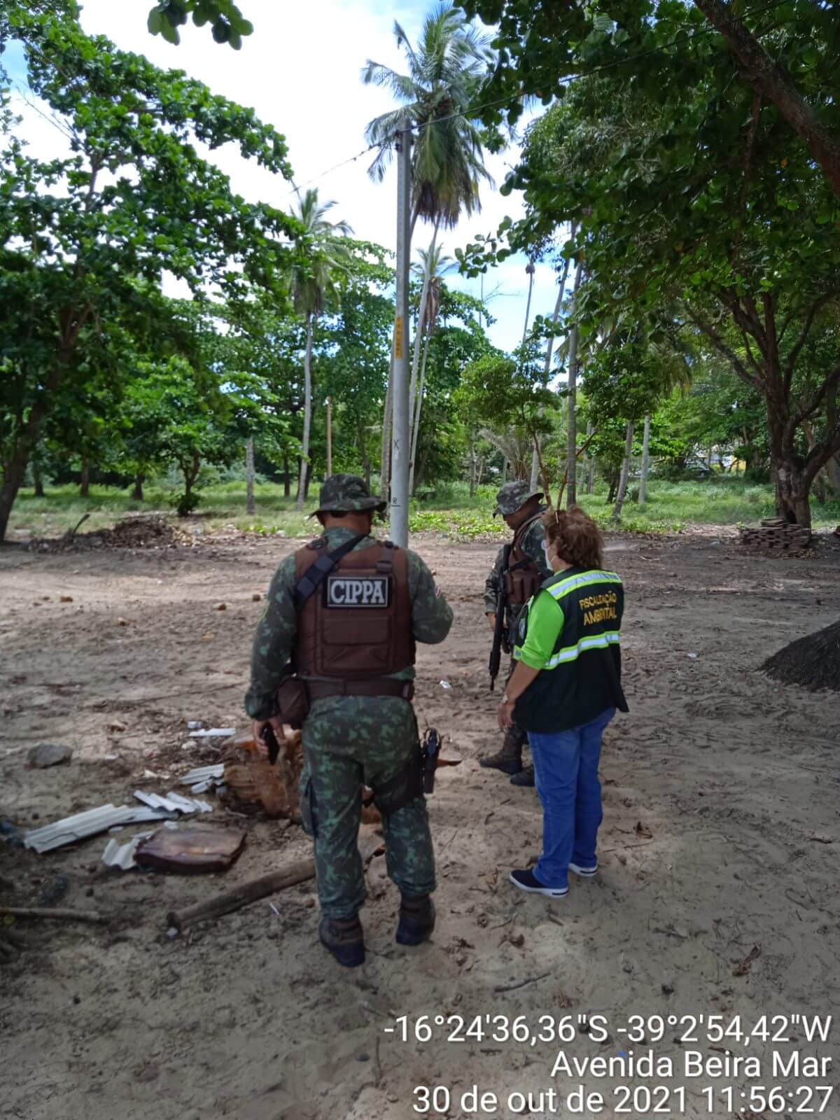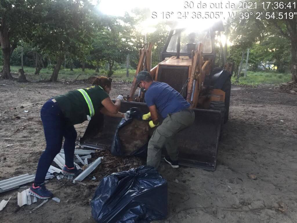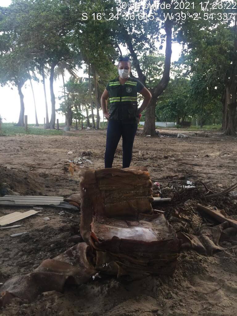 Material ainda não identificado foi recolhido em praia do Mundaí pela equipe de Fiscalização Ambiental, da Secretaria Municipal de Meio Ambiente e Causa Animal, na manhã de sábado (30).