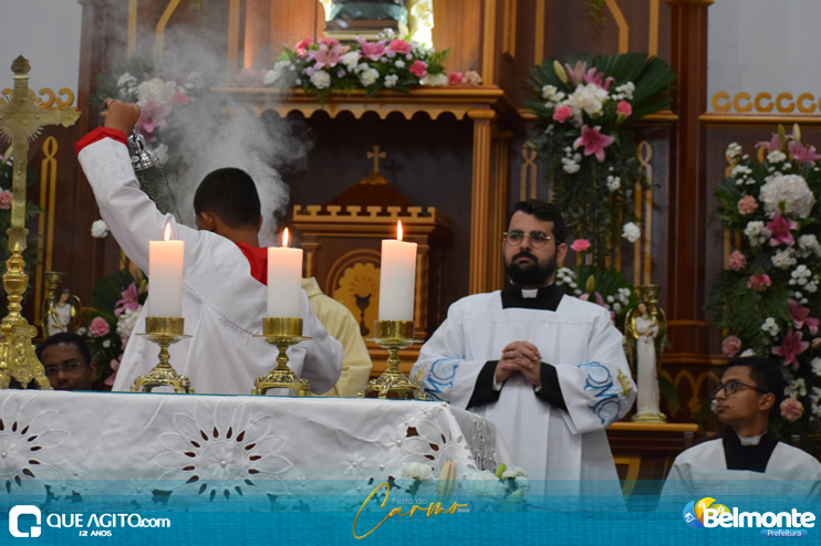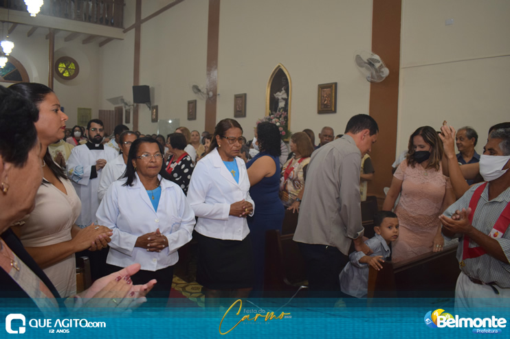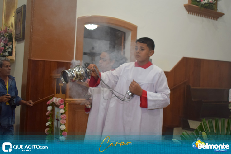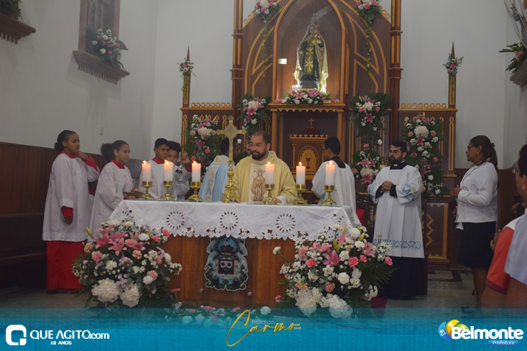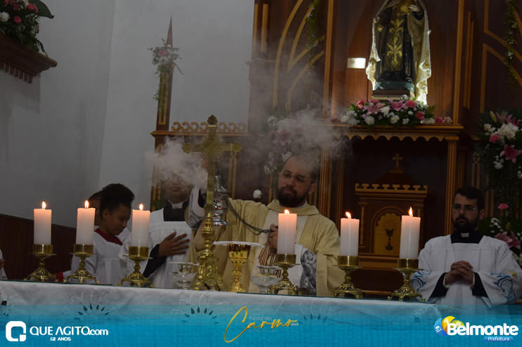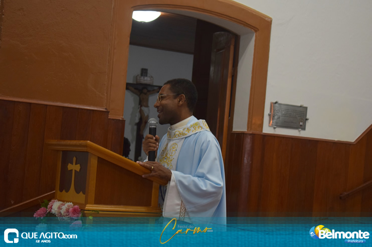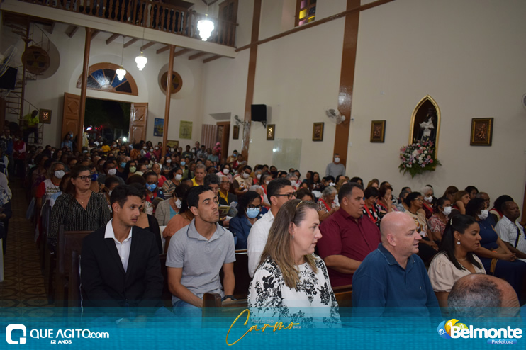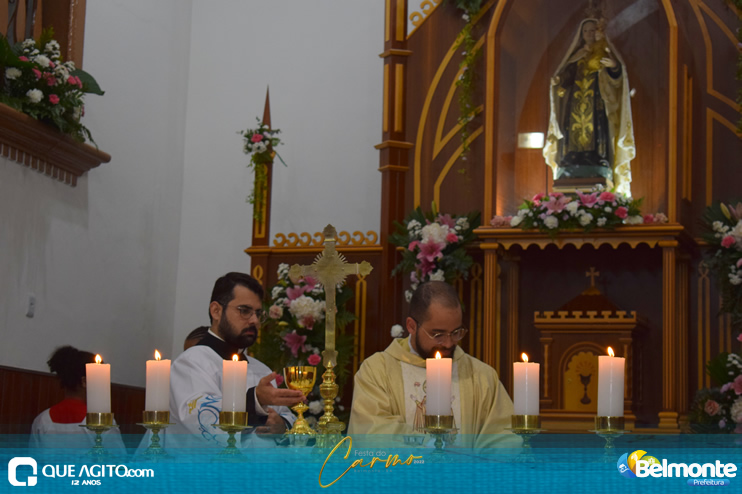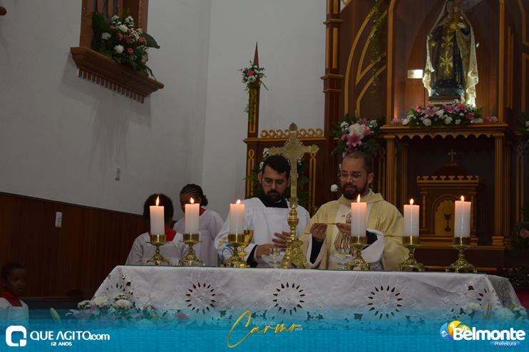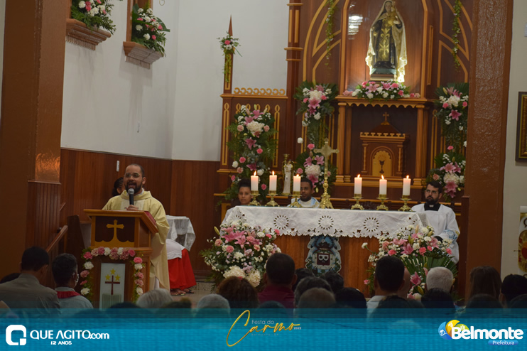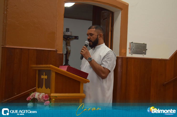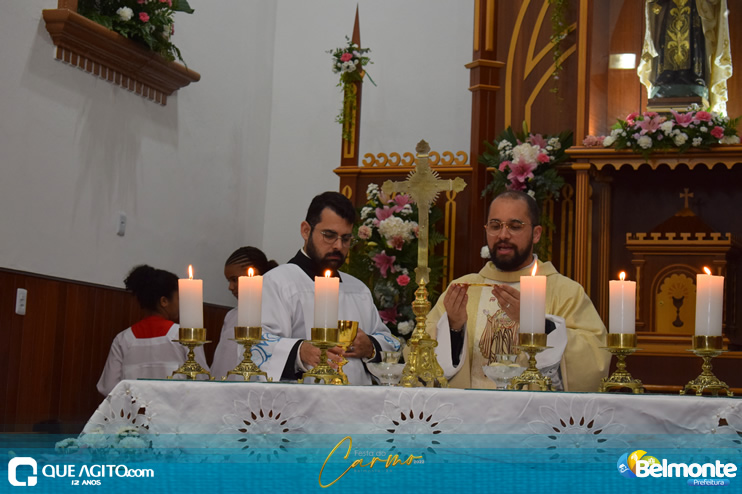 As 19 horas aconteceu a Santa Missa em comemoração aos festejos a Nossa Senhora do Carmo.