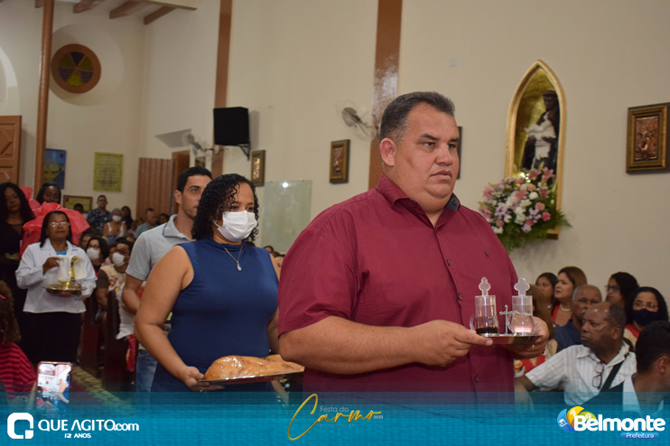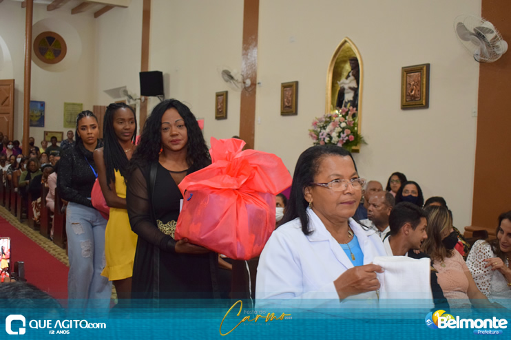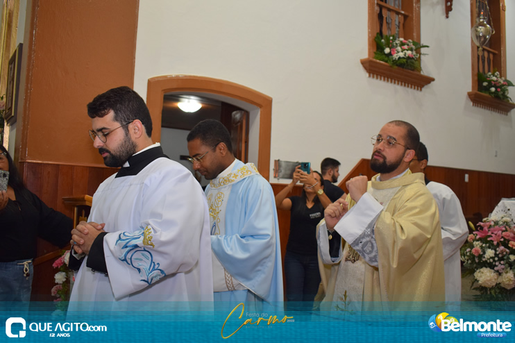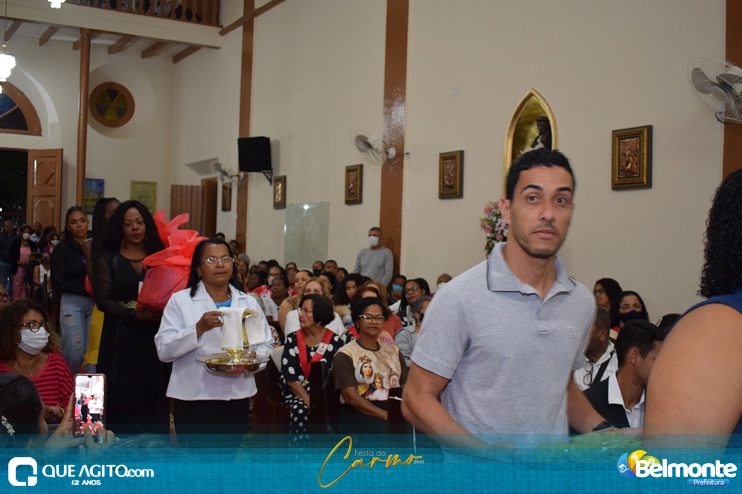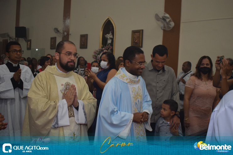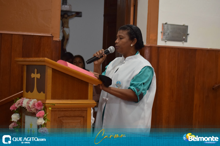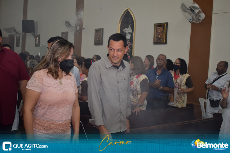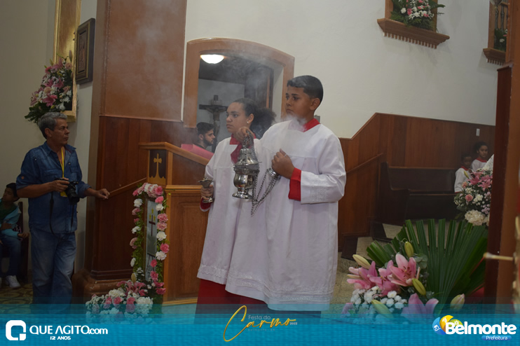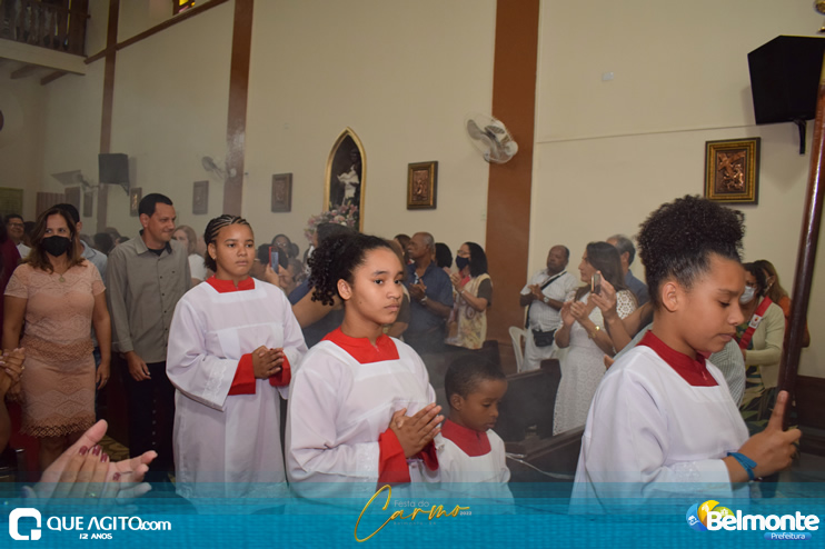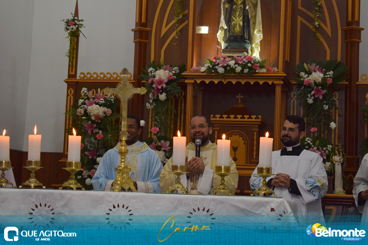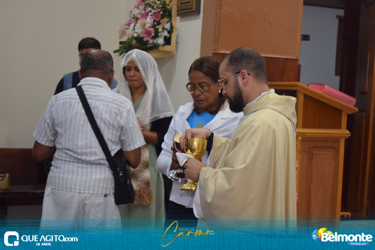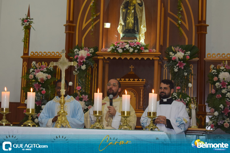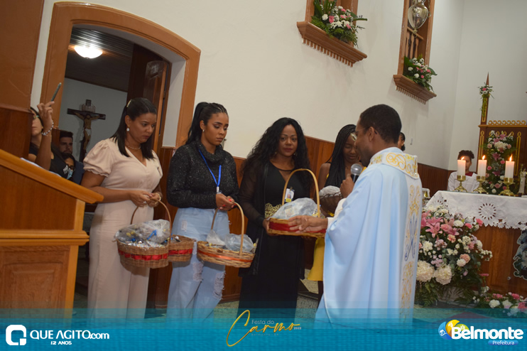 As 19 horas aconteceu a Santa Missa em comemoração aos festejos a Nossa Senhora do Carmo.