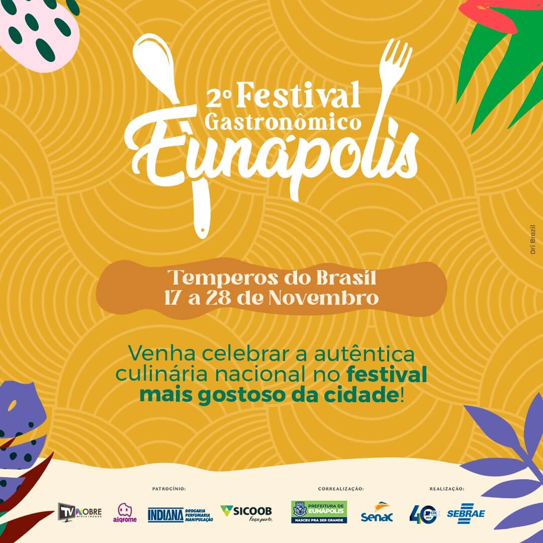 Após a edição inédita em formato delivery no ano passado, a expectativa para o 2º Festival Gastronômico de Eunápolis está ainda maior entre os empresários e organizadores. Realizado pelo Sebrae e CDL, em parceria com a Prefeitura Municipal, Sicoob e Senac, com o objetivo de incentivar o crescimento econômico da região, valorizando a culinária brasileira, celebrando produtos e técnicas regionais, o Festival apresentará 40 pratos elaborados para encantar os clientes locais e turistas. A programação pode ser conferida no site do evento.