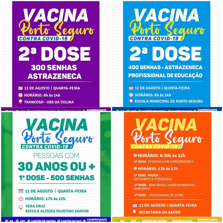 Porto Seguro: Cronograma de Vacinação contra a Covid-19 (de 11 a 12 de agosto) 8