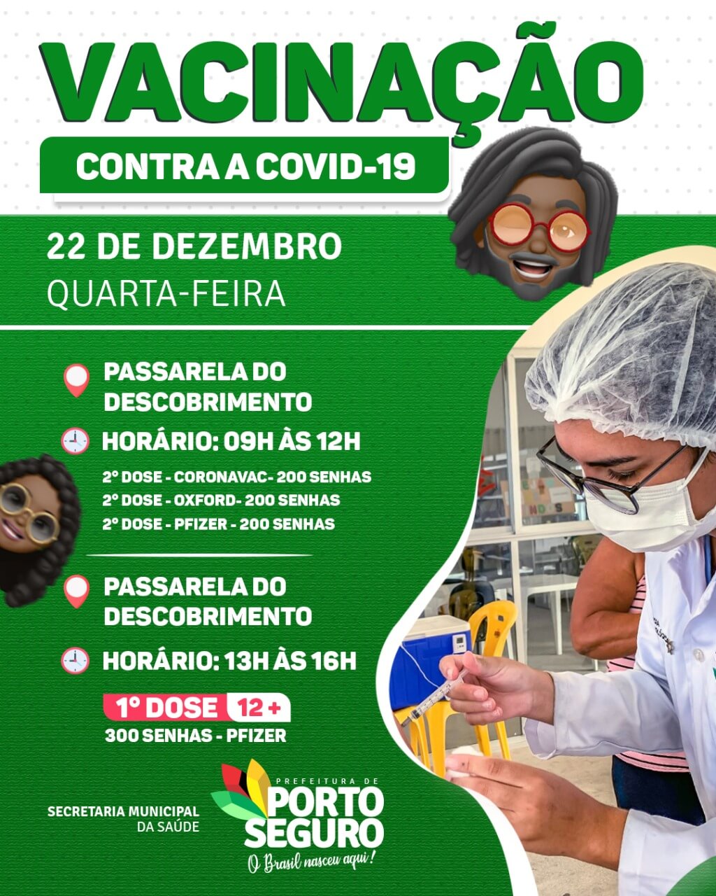 ✅ 1ª Dose – 12 anos ou mais – Distribuição de até 300 senhas.