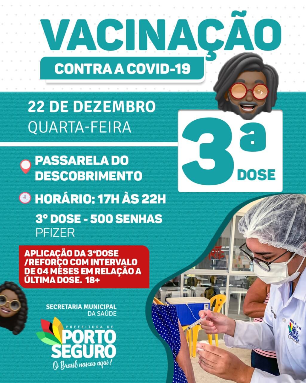 ✅ 3ª dose – Pfizer – Distribuição de até 500 senhas.