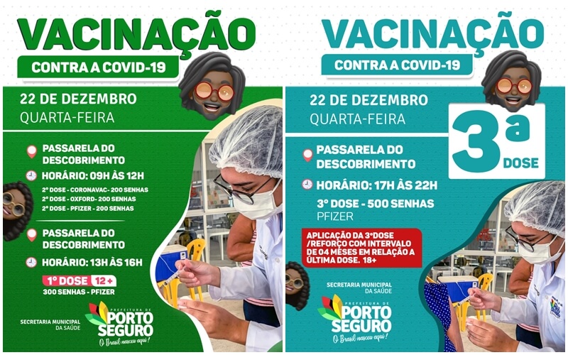 🚨 Aplicação da 3ª dose/reforço com intervalo de quatro meses após a última dose, destinadas para os vacinados com a 2ª dose.