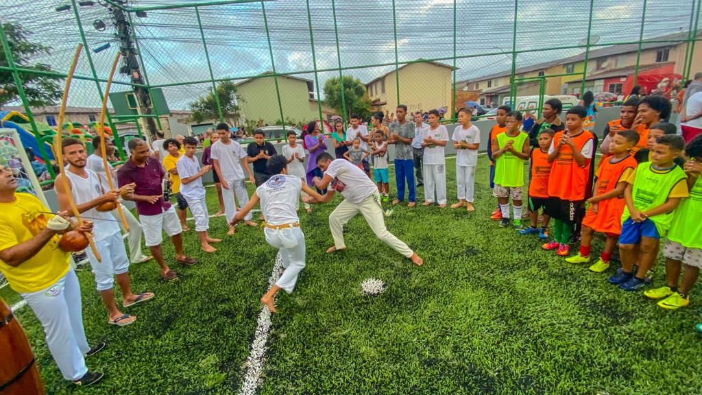 A tarde ainda foi animada pela Rua da Alegria, que levou muito entretenimento para o público infantojuvenil, com brinquedos infláveis, modalidades esportivas e brincadeiras, que atraíram centenas de crianças e adolescentes moradores do bairro.