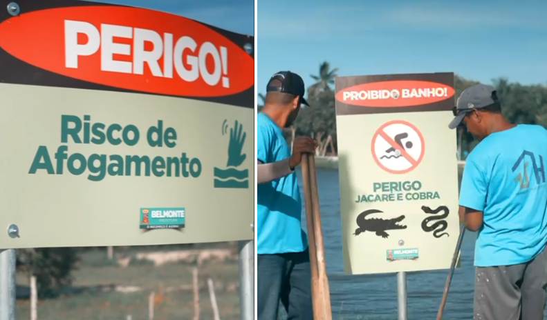 A Secretaria de Administração de Belmonte instalou placas de advertência na Lagoa das Garças em uma ação de conscientização e segurança. O objetivo principal da Prefeitura de Belmonte é alertar a população sobre os sérios perigos de tomar banho no local e, assim, prevenir acidentes. O alerta se deve a uma combinação de fatores de risco:
