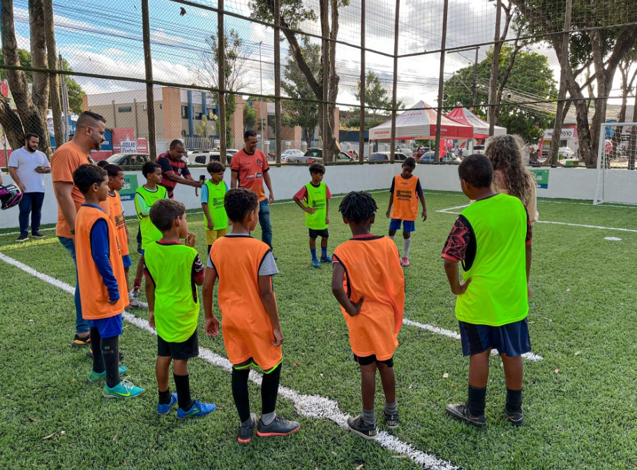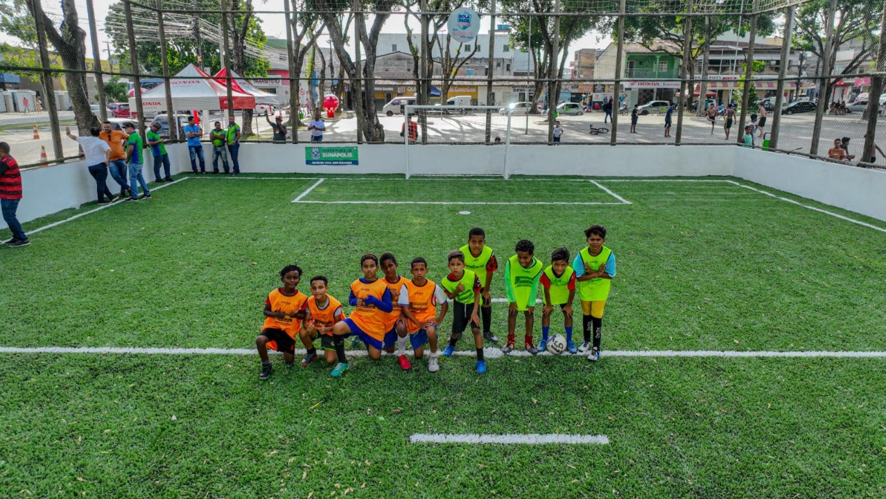 A revitalização abrangeu uma extensão de 530 metros quadrados, com destaque para a troca completa da grama sintética e a recuperação integral do sistema de drenagem do campo.