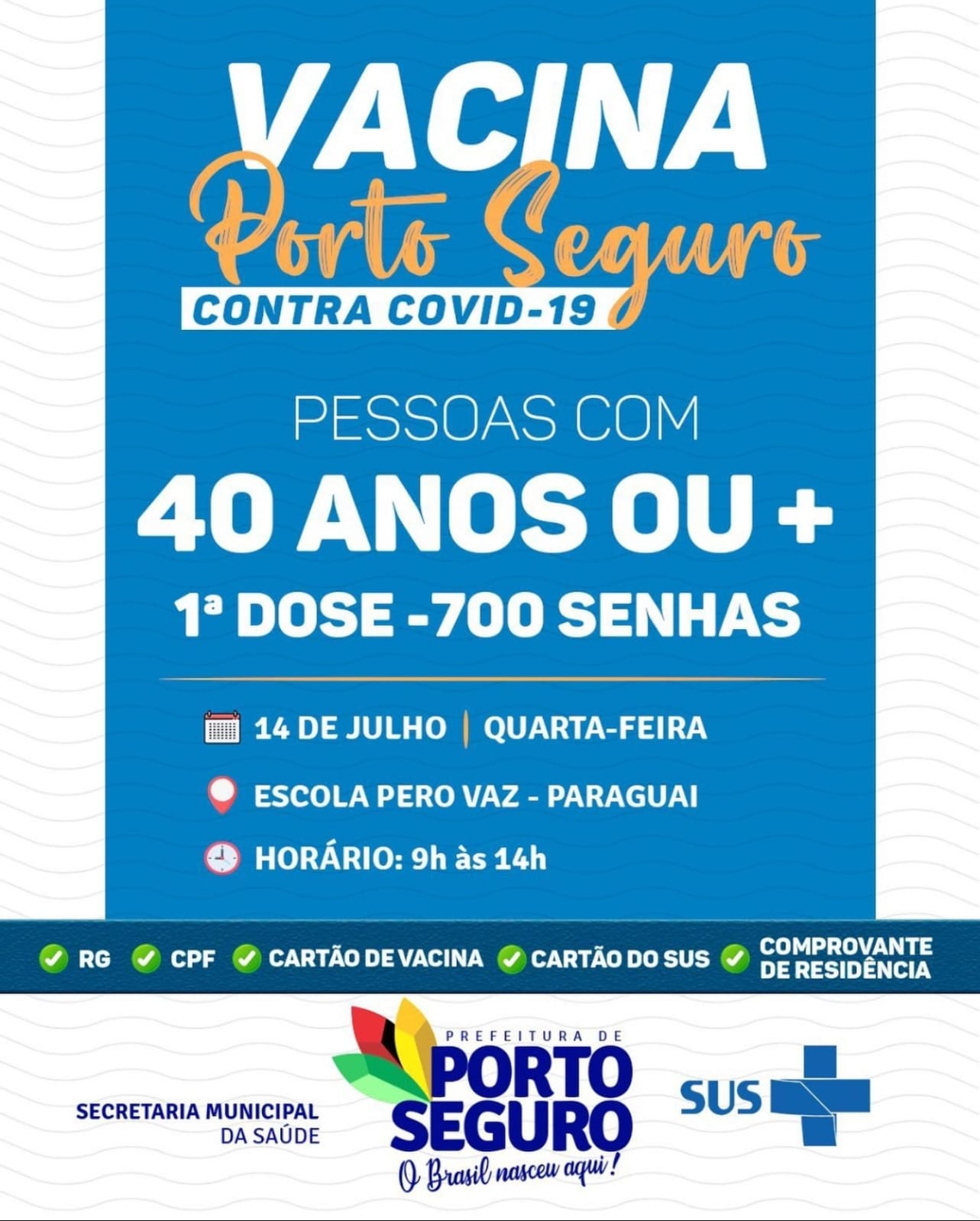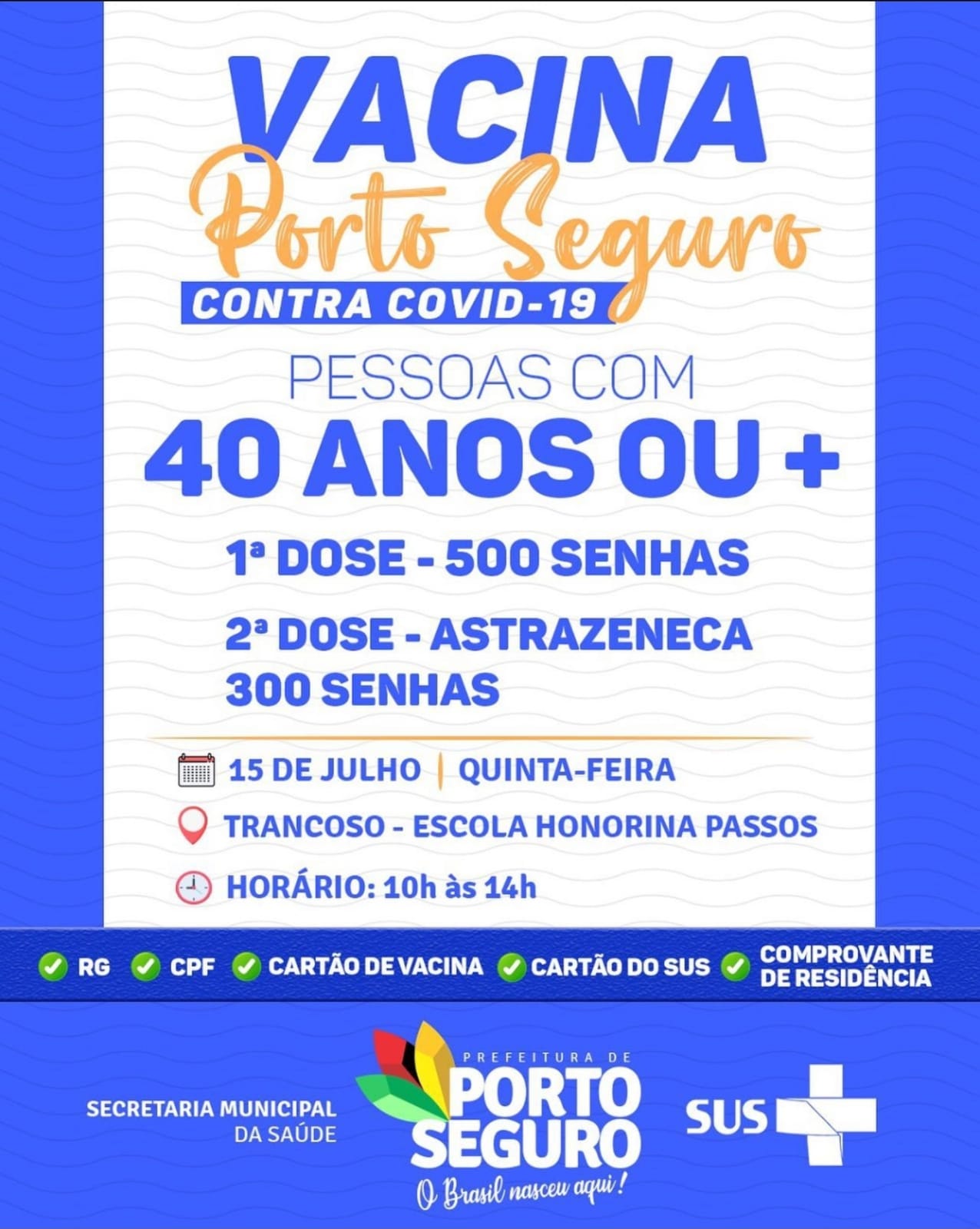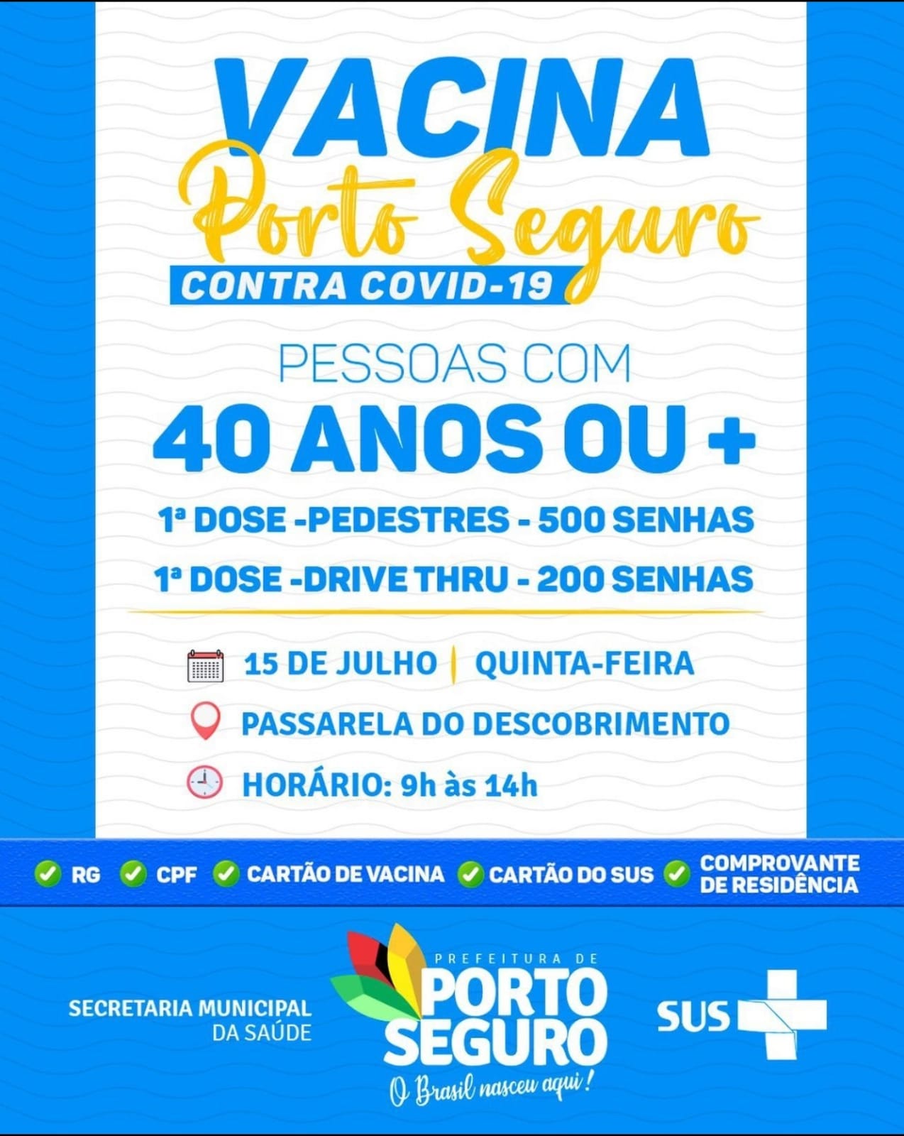 Mais de 39.000 pessoas já foram imunizadas contra a COVID-19 na Terra Mãe do Brasil, tem 40 anos ou mais? Vem vacinar você também!