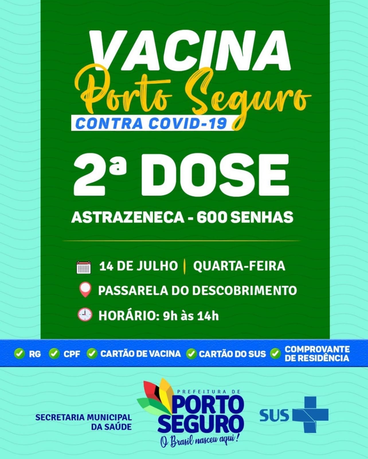 ✅ 2ª dose – AstraZeneca – distribuição de até 300 senhas